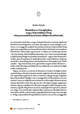Kedves, Gyula (2023) Skandalum az Országházban, avagy a Képviselőházi Őrség első parancsnokhelyettesének túlfejlett becsületérzéke. In: „Zászló alá magam csaptam fel”. Ünnepi tanulmányok a 65 éves Csikány Tamás dandártábornok tiszteletére. Ludovika Egyetemi Kiadó, Budapest, pp. 109-128. ISBN 9786156598868; 9786156598875
