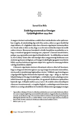 Sarusi Kiss, Béla (2023) Zsidó fogvatartottak az Országos Gyűjtőfogházban 1944-ben. In: „Zászló alá magam csaptam fel”. Ünnepi tanulmányok a 65 éves Csikány Tamás dandártábornok tiszteletére. Ludovika Egyetemi Kiadó, Budapest, pp. 313-327. ISBN 9786156598868; 9786156598875