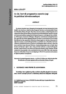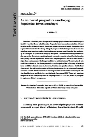 Heka, László (2026) Az ún. horvát pragmatica sanctio jogi és politikai következményei. JOG ÁLLAM POLITIKA: JOG- ÉS POLITIKATUDOMÁNYI FOLYÓIRAT, 18 (1). pp. 75-90. ISSN 2060-4580