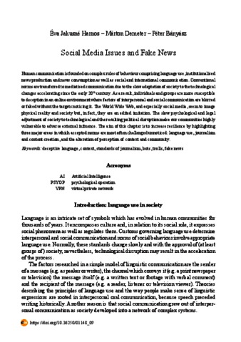 Jakusné Harnos, Éva and Demeter, Márton and Bányász, Péter (2023) Social Media Issues and Fake News. In: Security, Resilience and Sustainability of the European Union. Ludovika Egyetemi Kiadó, Budapest, pp. 131-147. ISBN 9786156598042