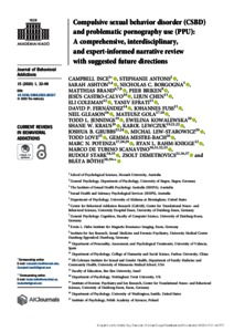 Ince, Campbell and Antons, Stephanie and Ashton, Sarah and Borgogna, Nicholas C. and Brand, Matthias and Briken, Peer and Castro-Calvo, Jesus and Chen, Lijun and Coleman, Eli and Efrati, Yaniv and Fernandez, David P. and Fuss, Johannes and Gleason, Neil and Gola, Mateusz and Jennings, Todd L. and Kowalewska, Ewelina and Kraus, Shane W. and Lewczuk, Karol and Grubbs, Joshua B. and Lew-Starowicz, Michal and Love, Todd and Mestre-Bach, Gemma and Potenza, Marc N. and Rahm-Knigge, Ryan L. and De Tubino Scanavino, Marco and Stark, Rudolf and Demetrovics, Zsolt and Bothe, Beata (2026) Compulsive sexual behavior disorder (CSBD) and problematic pornography use (PPU): A comprehensive, interdisciplinary, and expert-informed narrative review with suggested future directions. JOURNAL OF BEHAVIORAL ADDICTIONS, 15 (1). pp. 32-98. ISSN 2062-5871