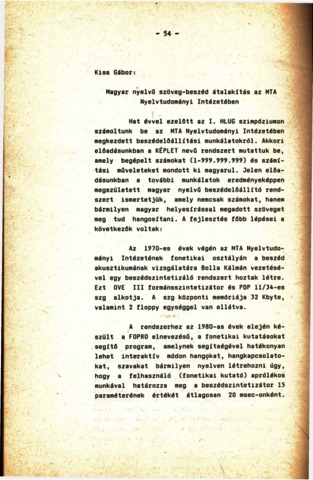 Kiss, Gábor (1987) Magyar nyelvű szöveg-beszéd átalakítása az Magyar Tudományos Akadémia Nyelvtudományi Intézetében. In: A magyarországi PDP-felhasználók hatodik HLUG ’87 tanfolyama. Neumann János Számítógép-tudományi Társaság, Keszthely, pp. 54-56.
