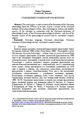 Савельева, Елена (2013) Становление словенской фразеологии. STUDIA SLAVICA SAVARIENSIA, 2013 (1-2). pp. 416-426. ISSN 1216-0016
