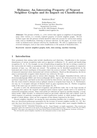 Buza, Krisztián Antal (2015) Hubness: An Interesting Property of Nearest Neighbor Graphs and its Impact on Classification. In: Proceedings of the 9th Hungarian-Japanese Symposium on Discrete Mathematics and Its Applications, 2015.06.02-2015.06.05, Fukuoka.