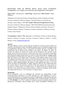 Tóth, János Pál and Bereczki, Judit and Varga, Zoltán and Rota, Jadranka and Sramkó, Gábor (2014) Relationships within the Melitaea phoebe species group (Lepidoptera: Nymphalidae): new insights from molecular and morphometric information. SYSTEMATIC ENTOMOLOGY, 39. pp. 749-757. ISSN 0307-6970