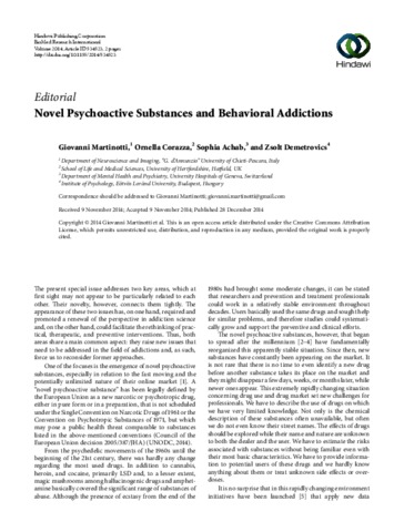 Martinotti, Giovanni and Corazza, Ornella and Achab, Sophia and Demetrovics, Zsolt (2014) Novel Psychoactive Substances and Behavioral Addictions. BIOMED RESEARCH INTERNATIONAL. ISSN 2314-6133