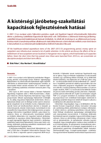 Elek, Péter and Kiss, Norbert Tamás and Váradi, Balázs (2015) A kistérségi járóbeteg-szakellátási kapacitások fejlesztésének hatásai. EGÉSZSÉGÜGYI GAZDASÁGI SZEMLE, 53 (1). pp. 28-38. ISSN 0013-2276