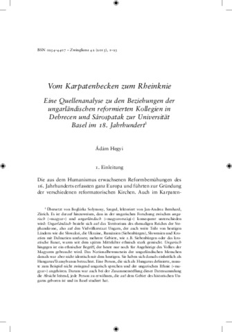 Hegyi, Ádám Alex (2015) Vom Karpatenbecken zum Rheinknie. Zwingliana, 42. pp. 225-247. ISSN 0254-4407