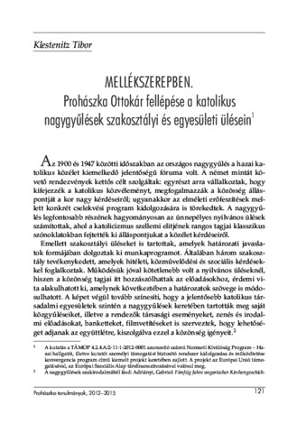 Klestenitz, Tibor István (2015) Mellékszerepben. Prohászka Ottokár fellépése a katolikus nagygyűlések szakosztályi és egyesületi ülésein. In: Prohászka-tanulmányok 2012-2015. Székesfehérvári Püspöki és Székeskáptalani Levéltár, Székesfehérvár, pp. 121-139. ISBN 978-963-88071-6-8