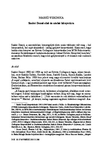 Markó, Veronika (2015) Szabó Dezső első és utolsó könyvtára. MAGYAR KÖNYVSZEMLE, 131 (3). pp. 286-299. ISSN 0025-0171