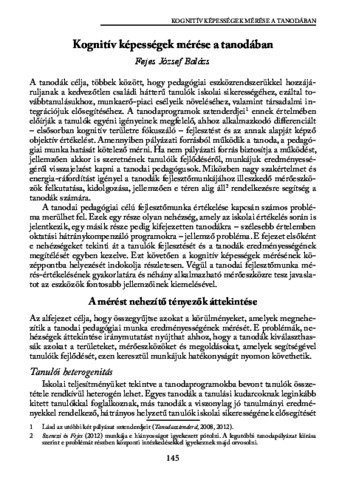 Fejes, József Balázs (2016) Kognitív képességek mérése a tanodában. In: Mire jó a tanoda? Motiváció Oktatási Egyesület, Szeged, pp. 145-158. ISBN 978-963-125-164-7