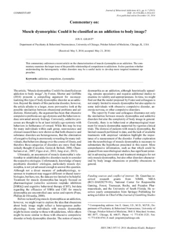 Grant, Jon (2015) Commentary on: Muscle dysmorphia: Could it be classified as an addiction to body image? Journal of Behavioral Addictions, 4 (1). pp. 6-7. ISSN 2062-5871