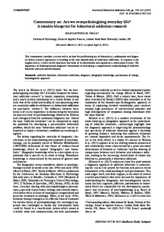Spada, Marcantonio M. (2015) Commentary on: Are we overpathologizing everyday life? A tenable blueprint for behavioral addiction research. Journal of Behavioral Addictions, 4 (3). pp. 124-125. ISSN 2062-5871