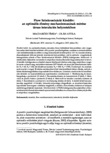 Magyaródi, Tímea and Oláh, Attila (2015) Flow Szinkronizáció Kérdőív: az optimális élmény mechanizmusának mérése társas interakciós helyzetekben. Mentálhigiéné és Pszichoszomatika, 16 (3). pp. 271-296. ISSN 1419-8126