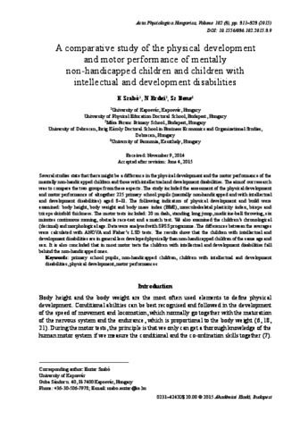 Szabó, E and Erdei, N and Bene, Sz (2015) A comparative study of the physical development and motor performance of mentally non-handicapped children and children with intellectual and development disabilities. Acta Physiologica Hungarica, 102 (3). pp. 311-323. ISSN 0231-424X