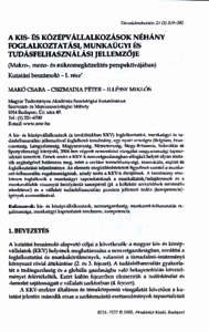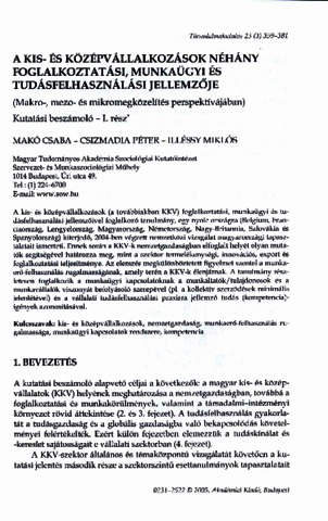 Makó, Csaba and Csizmadia, Péter and Illéssy, Miklós (2005) A kis- és középvállalkozások néhány foglalkoztatási, munkaügyi és tudásfelhasználási jellemzője (Makró-, mezo- és mikromegközelítés perspektívájában). Társadalomkutatás, 23 (3). pp. 359-381. ISSN 0231-2522