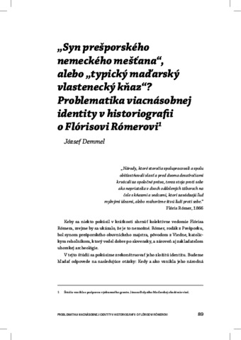Demmel, József (2016) Syn prešporského nemeckého mešťana” alebo „typický maďarský vlastenecký kňaz”? Problematika viacnásobnej identity v historiografii o Flórisovi Rómerovi. In: Bratislava. Múzeum mesta Bratislavy, Bratislava, pp. 89-104. ISBN 978-80-89636-06-8