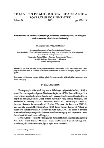 Konvička, Ondřej and Merkl, Ottó (2015) First records of Phloiotrya rufipes (Coleoptera: Melandryidae) in Hungary, with a national checklist of the family. FOLIA ENTOMOLOGICA HUNGARICA, 76. pp. 107-114. ISSN 0373-9465