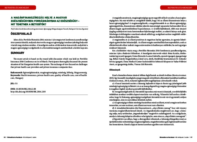 Gulácsi, László (2016) A magánfinanszírozás helye a magyar egészségügyben. BIZTOSÍTÁS ÉS KOCKÁZAT, 3 (2). pp. 88-97. ISSN 2064-9584