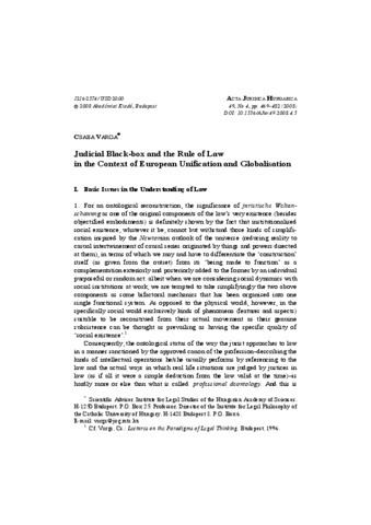 Varga, Csaba (2008) Judicial black-box and the rule of law in the context of European unification and globalisation. Acta Juridica Hungarica, 49 (4). pp. 469-482. ISSN 1216-2574