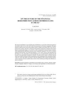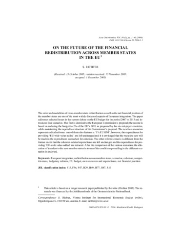 Richter, Sándor (2006) On the Future of the Financial Redistribution across Member States in the EU. Acta Oeconomica, 56 (1). pp. 1-43. ISSN 0001-6373