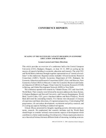 Kim, Aehyung and Pleskovic, Boris and Személy, Béla (2006) Conference Reports. Acta Oeconomica, 56 (1). pp. 103-117. ISSN 0001-6373