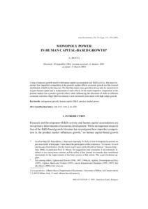Bucci, Alberto (2005) Monopoly power in human capital-based growth. Acta Oeconomica, 55 (2). pp. 121-150. ISSN 0001-6373