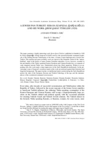 The paper examines a highly interesting workQirim Qarai Türkleri,published in Istanbul in 1928 by Seraya Sapsaloglu (Seraja Szapszal in Polish sources), the renowned Karaite communal leader, one of the leading Russian Turkologists of his time, a former Czarist diplomat and a Jewish Pan-Turkist. This popular and quasi-scientific work was typical of the Romantic Period of the “nation-building”stage in the history of many Eastern European minorities. It was, however, essential in the presentation of the Türkic-speaking Eastern European and Crimean Karaite Jews as remnants of some imagined ancient Türkic race, clandestinely preserving Altaic paganism. Written in an appealing style, this work made a deep impression on the Early Republican intellectuals. In the present paper some of Szapszal's assertions made in this work are analysed against their historical and linguistic background. The paper touches on intellectual trends current during the Early Republican period, the state of the European, Russian and Turkish Turkology of the age, and the metamorphoses of the secularised communal consciousness.