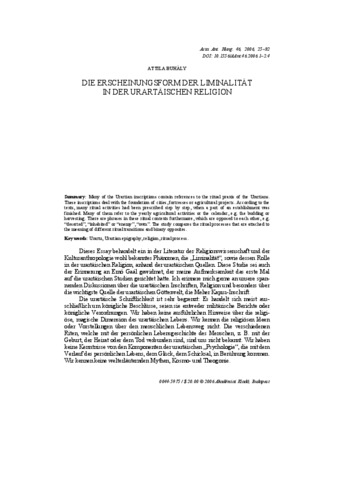 Buhály, Attila (2006) Die Erscheinungsform der Liminalität in der urartäischen Religion. Acta Antiqua, 46 (1-2). pp. 25-32. ISSN 0044-5975