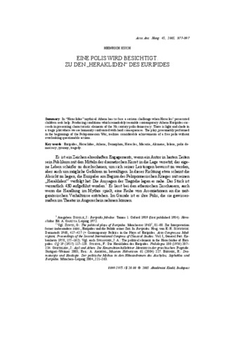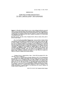 Kuch, Heinrich (2005) Eine Polis wird besichtigt. Zu den „Herakliden“ des Euripides. Acta Antiqua, 45 (4). pp. 377-397. ISSN 0044-5975