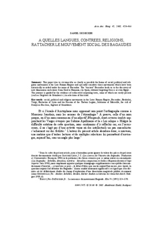 De Decker, Daniel (2005) Aquelles langues, contrées, religions,rattacher le mouvement socialdes bagaudes. Acta Antiqua, 45 (4). pp. 423-466. ISSN 0044-5975