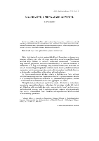H. Sipos, Edith (2005) Major Máté, a munkatárs szemével. Építés - Építészettudomány, 33 (1-2). pp. 21-26. ISSN 0013-9661