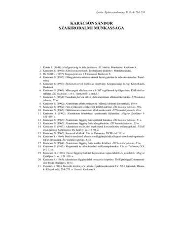 Szerkesztőségi írás, (2005) Karácson Sándor szakirodalmi munkássága. Építés - Építészettudomány, 33 (3-4). pp. 234-238. ISSN 0013-9661