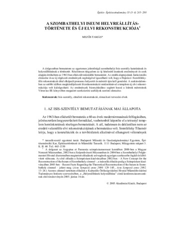 Mezős, Tamás (2005) A szombathelyi Iseum helyreállítás-története és új elvi rekonstrukciója. Építés - Építészettudomány, 33 (3-4). pp. 245-288. ISSN 0013-9661