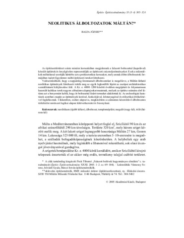 Bajza, József (2005) Neolitikus álboltozatok Máltán? Építés - Építészettudomány, 33 (3-4). pp. 305-324. ISSN 0013-9661