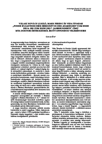 Garam, Éva (2005) Válasz Kovács László, Makk Ferenc és Vida Tivadar „Funde Byzantinischer Herkunft in der Awarenzeit vom Ende des 6. bis zum Ende des 7. Jahrhunderts” Című MTA doktori értekezésről írott opponensi véleményeire. Archaeologiai Értesítő, 130 (1-2). pp. 241-248. ISSN 0003-8032