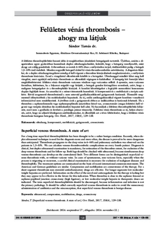Sándor, Tamás (2017) Felületes vénás thrombosis – ahogy ma látjuk | Superficial venous thrombosis. A state of art. Orvosi Hetilap, 158 (4). pp. 129-138. ISSN 0030-6002