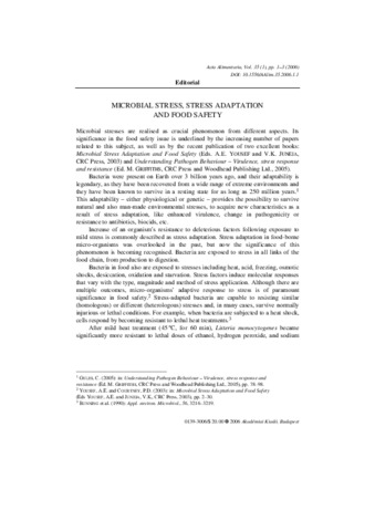 Beczner, J. (2006) Editorial - Microbial stress, stress adaptation and food safety. Acta Alimentaria, 35 (1). pp. 1-3. ISSN 0139-3006