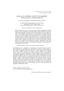 Dvaranauskait?, A. and Venskutonis, P. R. and Labokas, J. (2006) Radical scavenging activity of raspberry (Rubus idaeus L.) fruit extracts. Acta Alimentaria, 35 (1). pp. 73-83. ISSN 0139-3006