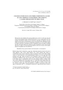 Shell eggs have been irradiated with increasing radiation doses in the 0.5-3.0 kGy dose range and various non-microbiological changes, important from the point of view of consumer quality, have been estimated. Dose-dependent changes in the flow behaviour of egg white and brittleness of the yolk membrane in broken eggs, sensorial parameters of the raw and soft-boiled eggs, whippability and foam stability of the egg white were observed. Considering that a minimal dose of 1.5 kGy would be required for radiation inactivation of salmonellae and other, non-pathogenic bacteria, the quality of irradiated eggs upon such gamma radiation dose would not be equal in all parameters to those of the fresh shell eggs, however, changes in sensorial and functional properties at this dose level may be still acceptable, mainly for risk population and some industrial use.