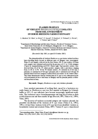 Plasmid profiles of virulent Rhodococcus equiisolates from soil environment on horse-breeding farms in Hungary