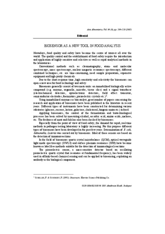 Váradi, M. (2005) Editorial - Biosensor as a new tool in food analysis. Acta Alimentaria, 34 (3). pp. 209-210. ISSN 0139-3006