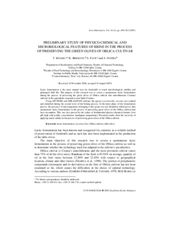 Kulisic, T. and Berkovic, K. and Pavic, S. and Sustra, A. (2005) Preliminary study of physico-chemical and microbiological features of brine in the process of preserving the green olives of oblica cultivar. Acta Alimentaria, 34 (4). pp. 499-505. ISSN 0139-3006
