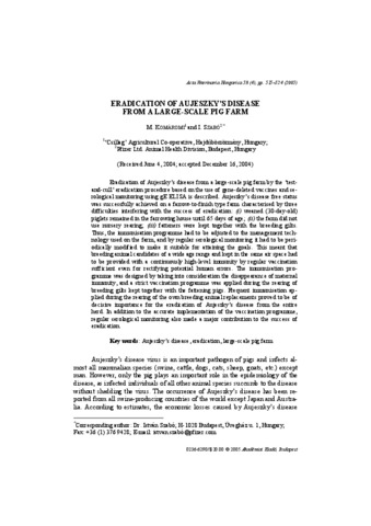 Komáromi, M. and Szabó, I. (2005) Eradication of Aujeszky's disease from a large-scale pig farm. Acta Veterinaria Hungarica, 53 (4). pp. 515-524. ISSN 0236-6290