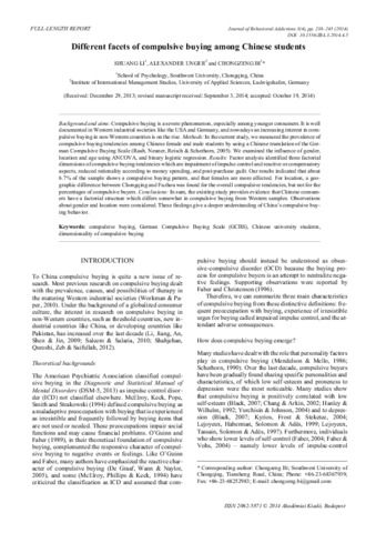 Li, Shuang and Unger, Alexander and Bi, Chongzeng (2014) Different facets of compulsive buying among Chinese students. Journal of Behavioral Addictions, 3 (4). pp. 238-245. ISSN 2062-5871