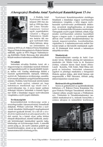 Tóth, Enikő (2016) A beregszászi Hodinka Antal Nyelvészeti Kutatóközpont 15 éve. RUSZIN VILÁG, 121 (Mellék). pp. 5-8. ISSN 1785-1149