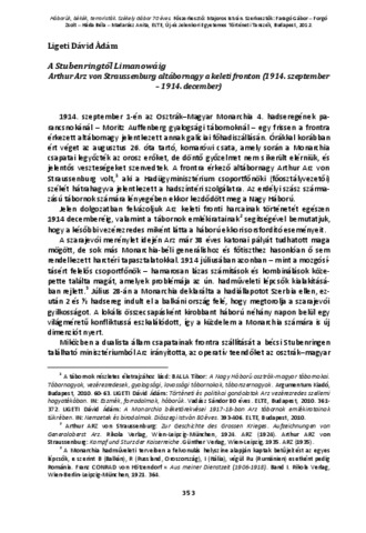 Ligeti, Dávid Ádám (2012) A Stubenringtől Limanowáig. In: Háborúk, békék, terroristák. ELTE BTK Új- és Jelenkori Egyetemes Történeti Tanszék, Budapest, pp. 353-366. ISBN 978-963-284-277-6
