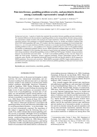 Barry, Declan T. and Pilver, Corey E. and Hoff, Rani A. and Potenza, Marc N. (2013) Pain interference, gambling problem severity, and psychiatric disorders among a nationally representative sample of adults. Journal of Behavioral Addictions, 2 (3). pp. 138-144. ISSN 2062-5871