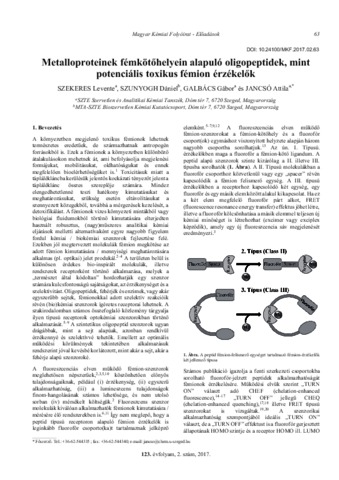 Szekeres, Levente István and Szunyogh, Dániel Mihály and Galbács, Gábor and Jancsó, Attila (2017) Metalloproteinek fémkötõhelyein alapuló oligopeptidek, mint potenciális toxikus fémion érzékelõk. MAGYAR KÉMIAI FOLYÓIRAT - KÉMIAI KÖZLEMÉNYEK (1997-), 123 (2). pp. 63-74. ISSN 1418-9933
