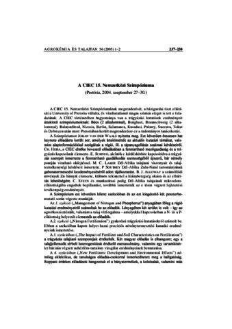 Jolánkai, Márton (2005) A CIEC 15. Nemzetközi Szimpóziuma (Pretória, 2004. szeptember 27-30.). Agrokémia és Talajtan, 54 (1-2). pp. 237-238. ISSN 0002-1873
